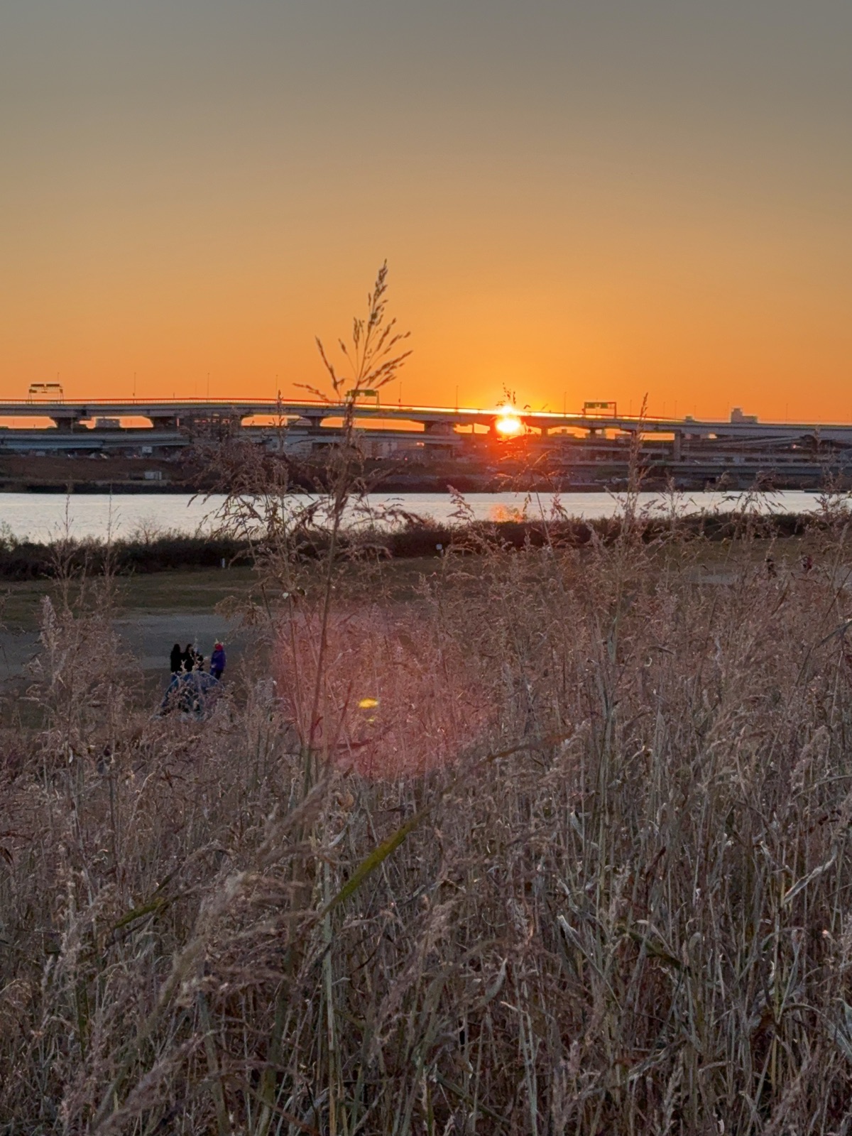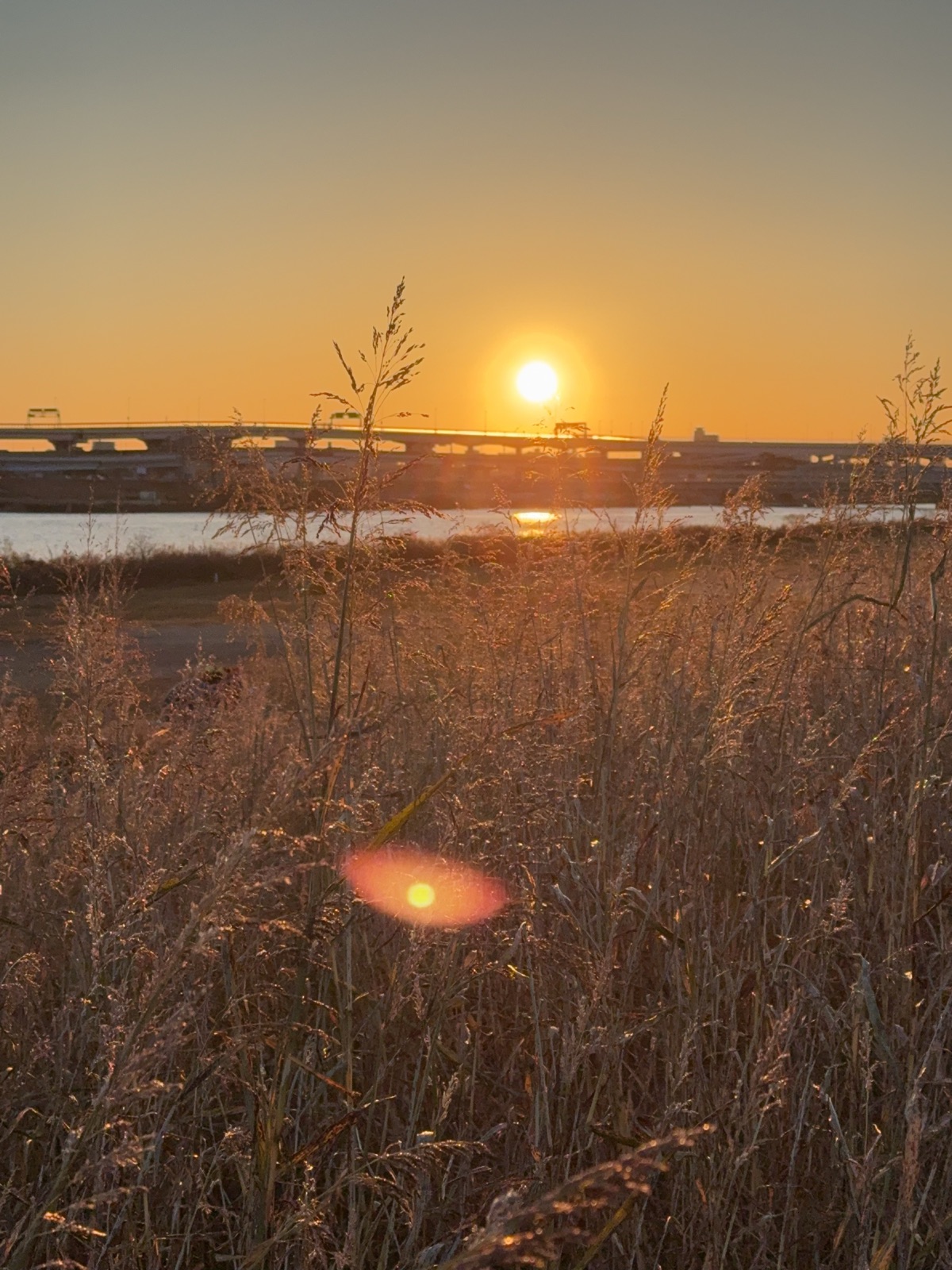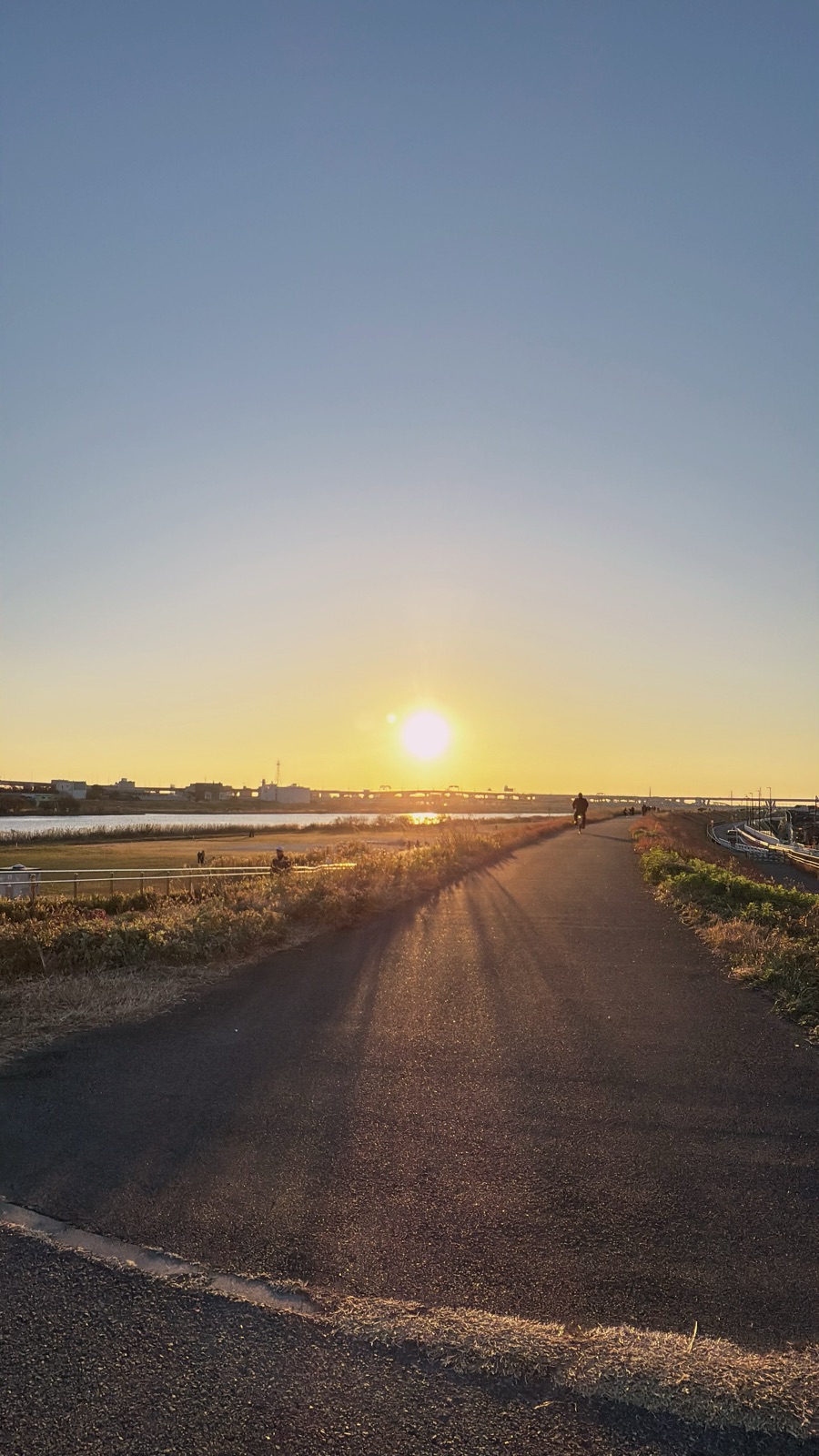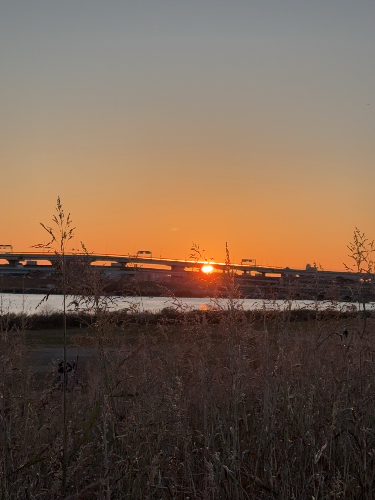 おはようございます♪ 恒例の荒川初日の出 今朝もびっくりするほど雲一つない天気の日の出で2025年スタートです。