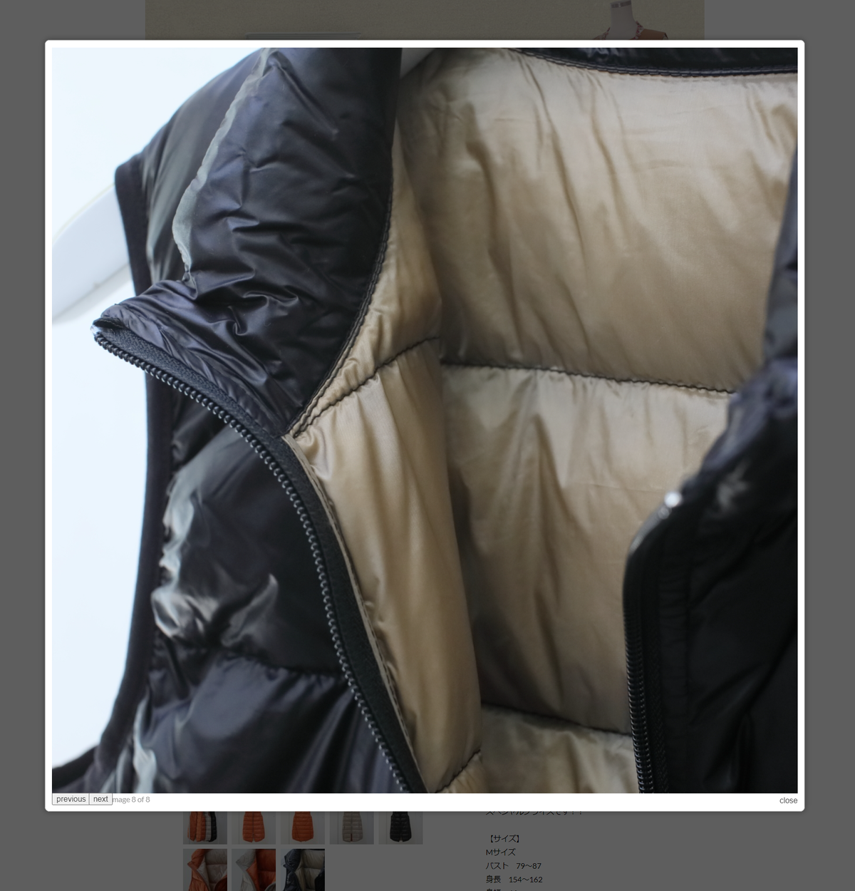 ダウン80%・フェザー20%のロングベスト。
