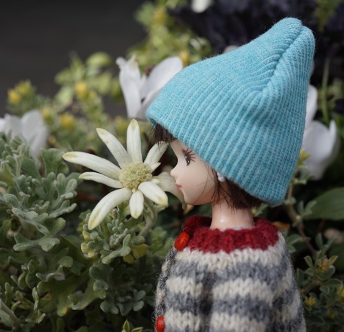 お帽子は 瞳の色に合わせました。
